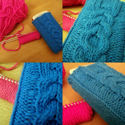 Pour la chaussette de portable, je me suis bien amusée avec les torsades ; par contre, pour l’appareil photo, je vais faire une chaussette toute simple, ça ira plus vite ! ^^