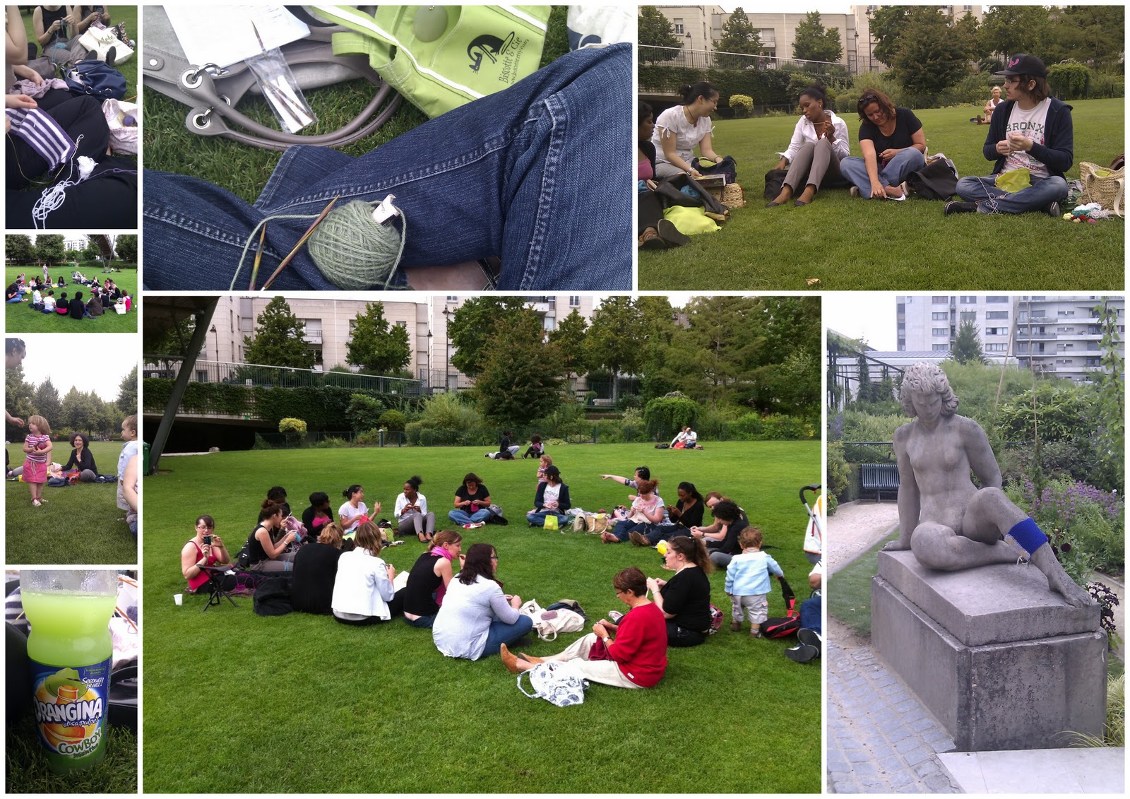 Heureusement, nous avons eu beaucoup de chance et il n’a pas plus dans le Jardin de Reuilly. Par contre, une bonne partie d’entre nous n’est pas restée jusqu’au bout car au fur et à mesure de la soirée tricot en plein air, le ciel est devenu de plus en plus menaçant.